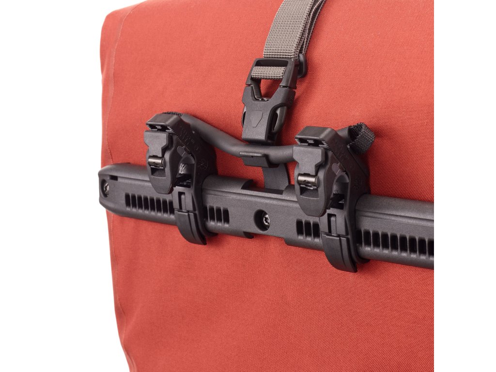 Ortlieb Back-Roller Plus nie je len obyčajný zadný kufor na bicykel, je to originálny a vylepšený produkt navrhnutý tak, aby spĺňal všetky vaše potreby. Je vyrobený z nepremokavej a vysoko odolnej tkaniny Cordura s elegantným textilným vzhľadom, ktorá chráni nielen pred vlhkosťou, ale aj pred prachom a nečistotami. Taška je vybavená vodotesným vonkajším vreckom s rolovacím uzáverom, ktoré udrží vaše menšie predmety v suchu a bezpečí, pričom zostanú ľahko dostupné. Vďaka bočnej odrazke zostanete viditeľní aj za zhoršených svetelných podmienok. Upínací systém Quick-Lock umožňuje jednoduché a rýchle pripevnenie k nosiču bez akejkoľvek námahy. Vnútorný organizér poskytuje dostatok priestoru na usporiadanie vašej výbavy. A keď práve nie ste na bicykli, môžete nosič Back-Roller Plus pohodlne prenášať pomocou ramenného popruhu.Dodatočné parametre