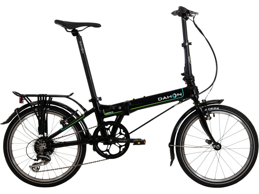 Najlepší pomer ceny a výkonu Skladací bicykel Dahon Mariner D8, nový model založený na klasickom dizajne Univerzálny skladací bicykel na jazdu po meste a krátke výlety. Vďaka kompaktným rozmerom je tento bicykel ideálny na cesty vlakom alebo autobusom. Stačí ho zložiť do balíka s rozmermi 66 x 38 x 85 cm za menej ako 15 sekúnd, odviezť sa verejnou dopravou, rozložiť bicykel, nasadnúť a vyraziť! Bicykel je ľahký, váži len 11,9 kg a je vhodný pre výšky od 150 cm do 190 cm. Dahon Mariner je vybavený osemrýchlostným prehadzovačom Shimano Acera, hliníkovými V-brzdami a pevnou oceľovou vidlicou. Vlastnosti ako blatníky, stojan a zadný nosič batožiny zaisťujú pohodlnú jazdu v bežnom oblečení alebo pri preprave nákupov, či už v meste alebo na výlete. Skladací bicykel Dahon Mariner D8 je vhodný pre každého. Vďaka nastaviteľnej výške sedadla a teleskopickému riadidlu je bicykel vhodný pre jazdcov takmer akejkoľvek výšky, zatiaľ čo jeho elegantný vzhľad ho predurčuje pre dámy aj pánov. Rám unesie až 105 kilogramov.Dodatočné parametre